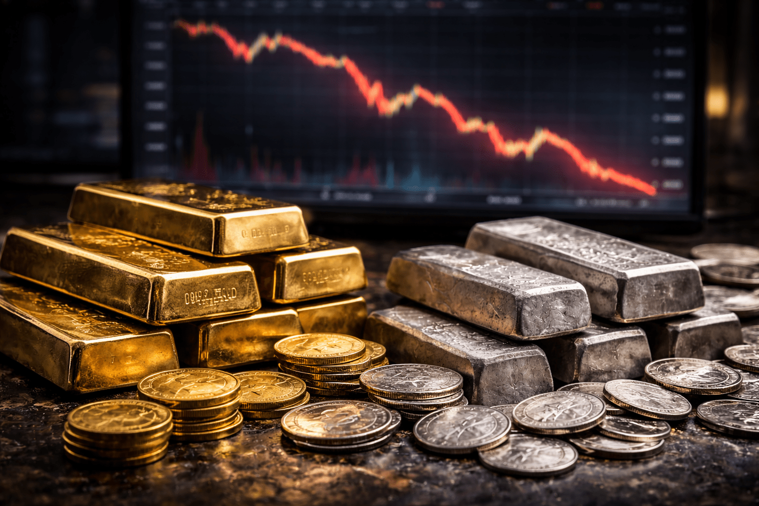 Precious metals experienced a sharp decline in price on Thursday, with both gold and silver falling amidst a broad market sell-off.